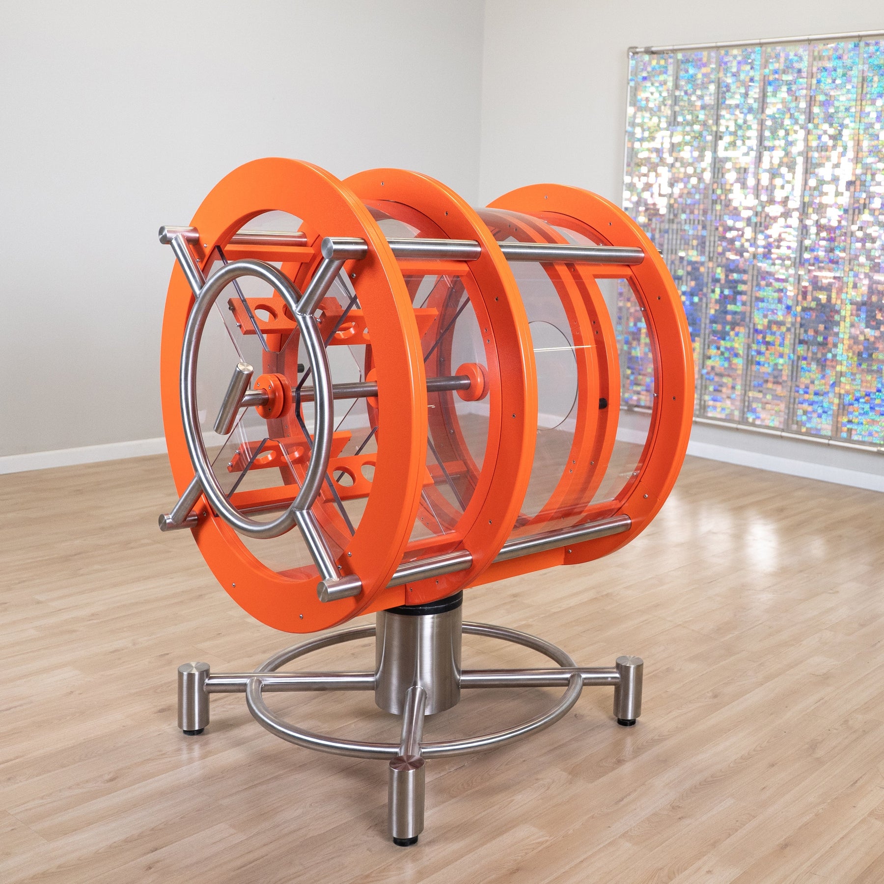Unleash the power of air with our oversized interactive air cannon. Designed for hands-on fun and exploration, this exhibit lets children and families use a plunger-style handle to create mesmerizing toroidal wind vortexes. Guests can aim the cannon in different directions using a massive, easy-to-move bearing system, encouraging trial-and-error learning and teamwork. Add shimmer wall panels or stackable cups as targets to make the invisible power of air blasts visible, creating an engaging and dynamic experience. Perfect for sparking curiosity and playful experimentation in young minds.