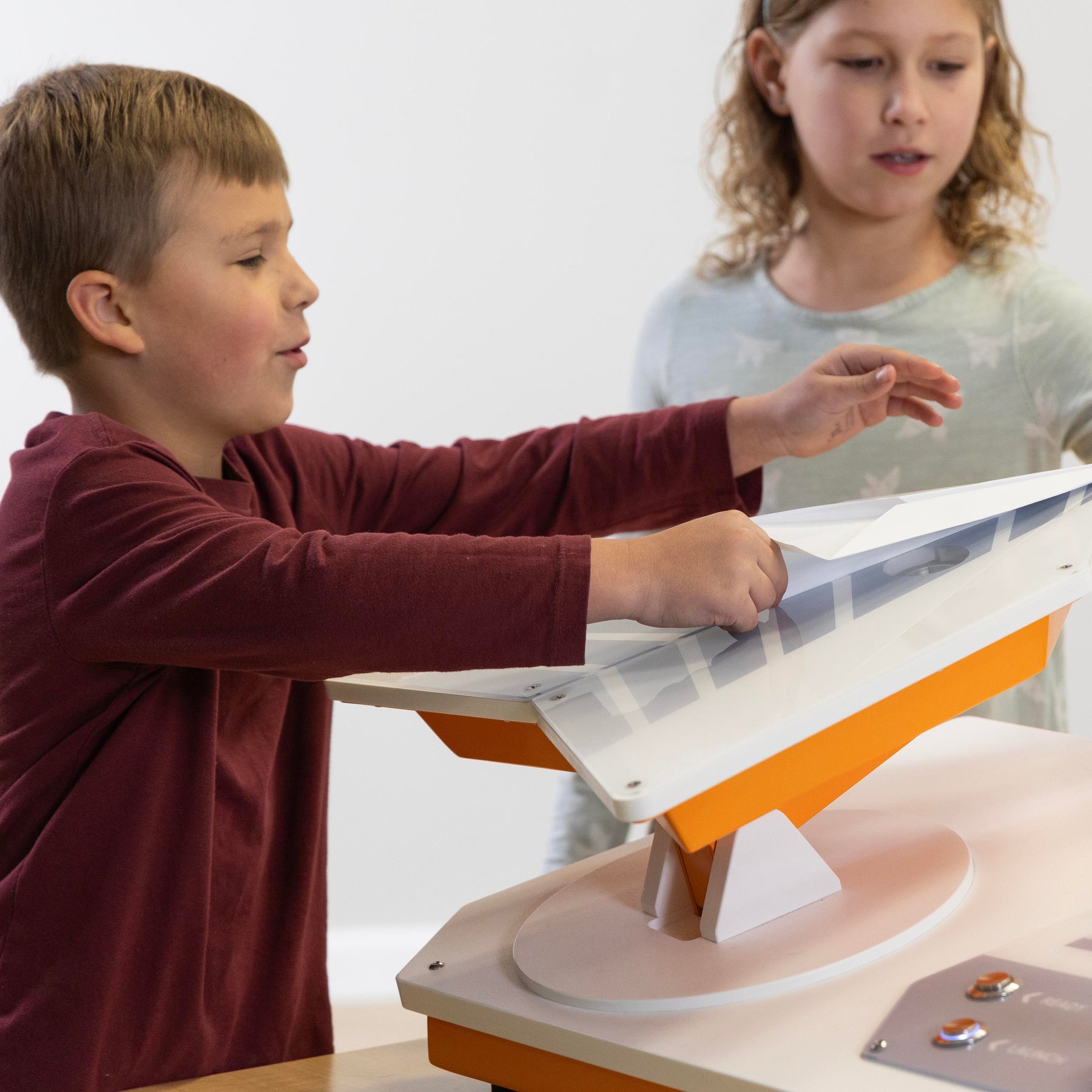 Send handcrafted paper airplanes whirling through the air with this exhilarating, hands-on interactive. Experiment with planes of all shapes and sizes in order to observe aerodynamic flight principles such as thrust, lift, and drag. Place yourself in the pilot seat as you change the angle and direction of the flight. Finally, use trial and error to see which plane performs the best. Ready, aim, launch!